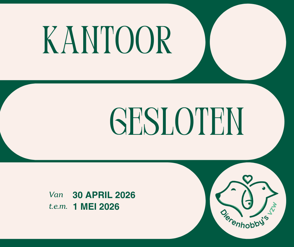 Van donderdag 30 april t.e.m. vrijdag 1 mei zal het kantoor van Dierenhobby's vzw gesloten zijn.